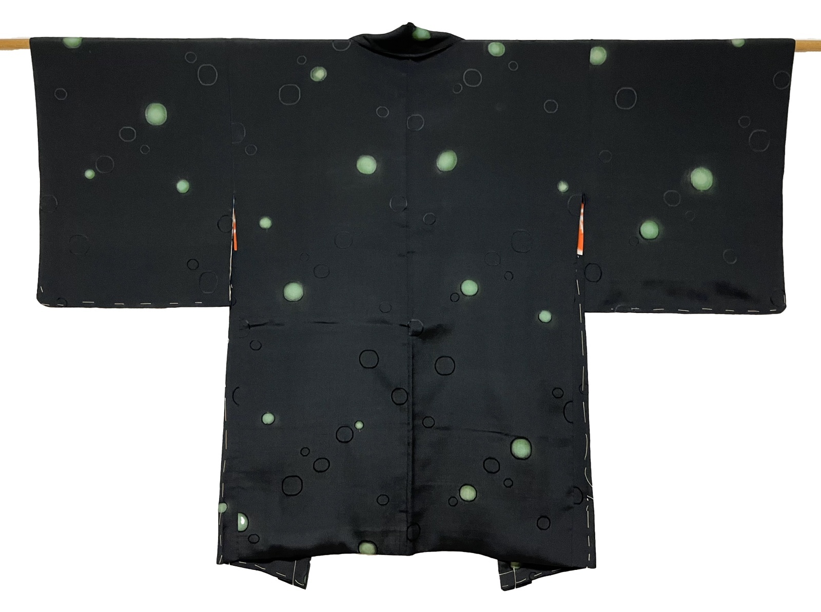 JAPANESE KIMONO SILK ANTIQUE HAORI / GREEN DOT / BLACK / UNUSED