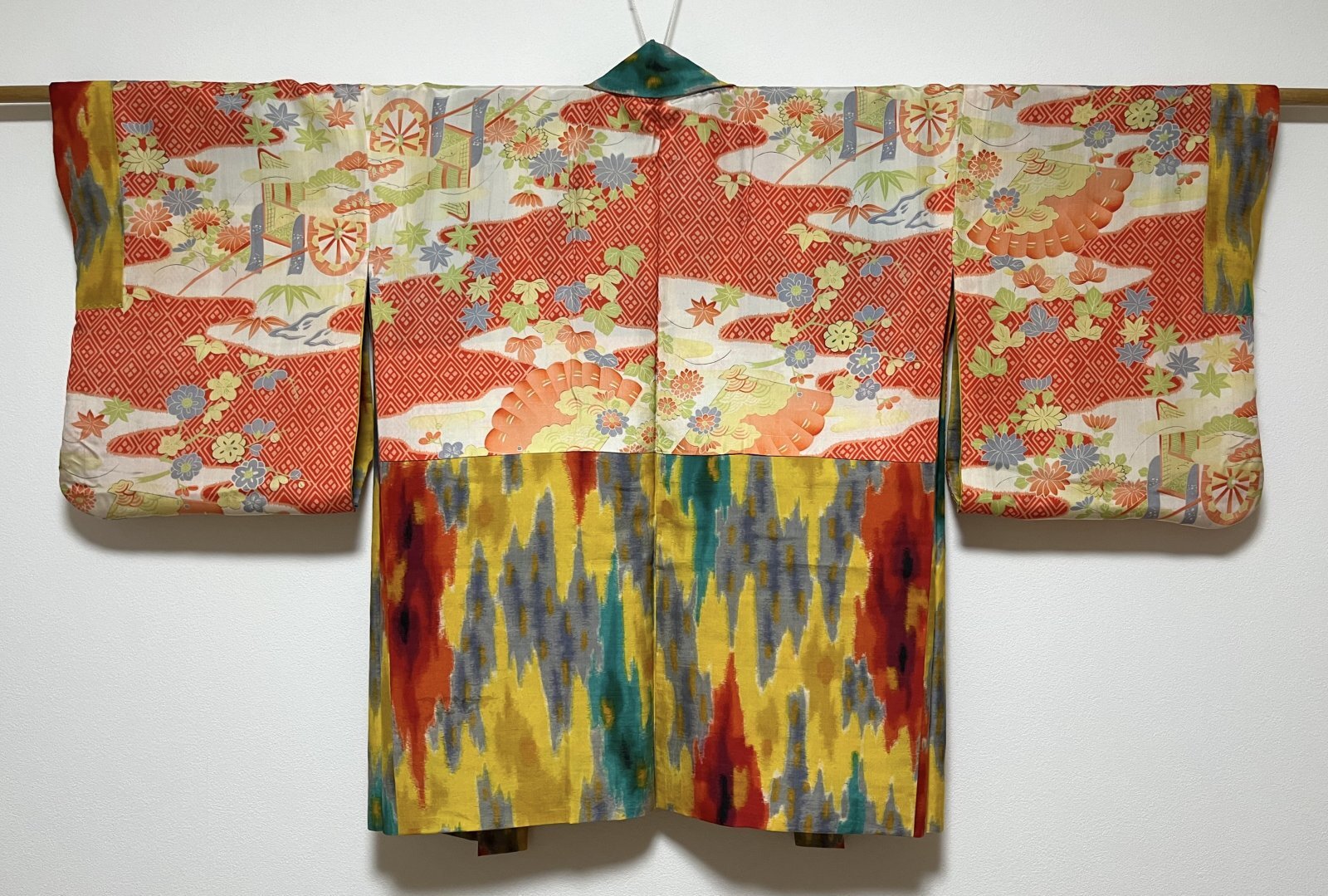 JAPANESE KIMONO SILK ANTIQUE HAORI / MEISEN / IKAT / YELLOW [0036]