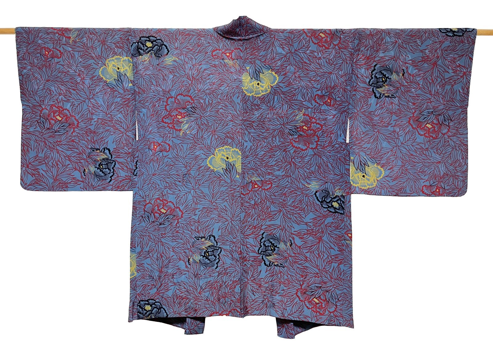 JAPANESE KIMONO SILK ANTIQUE HAORI / PEONY / BLUE & RED