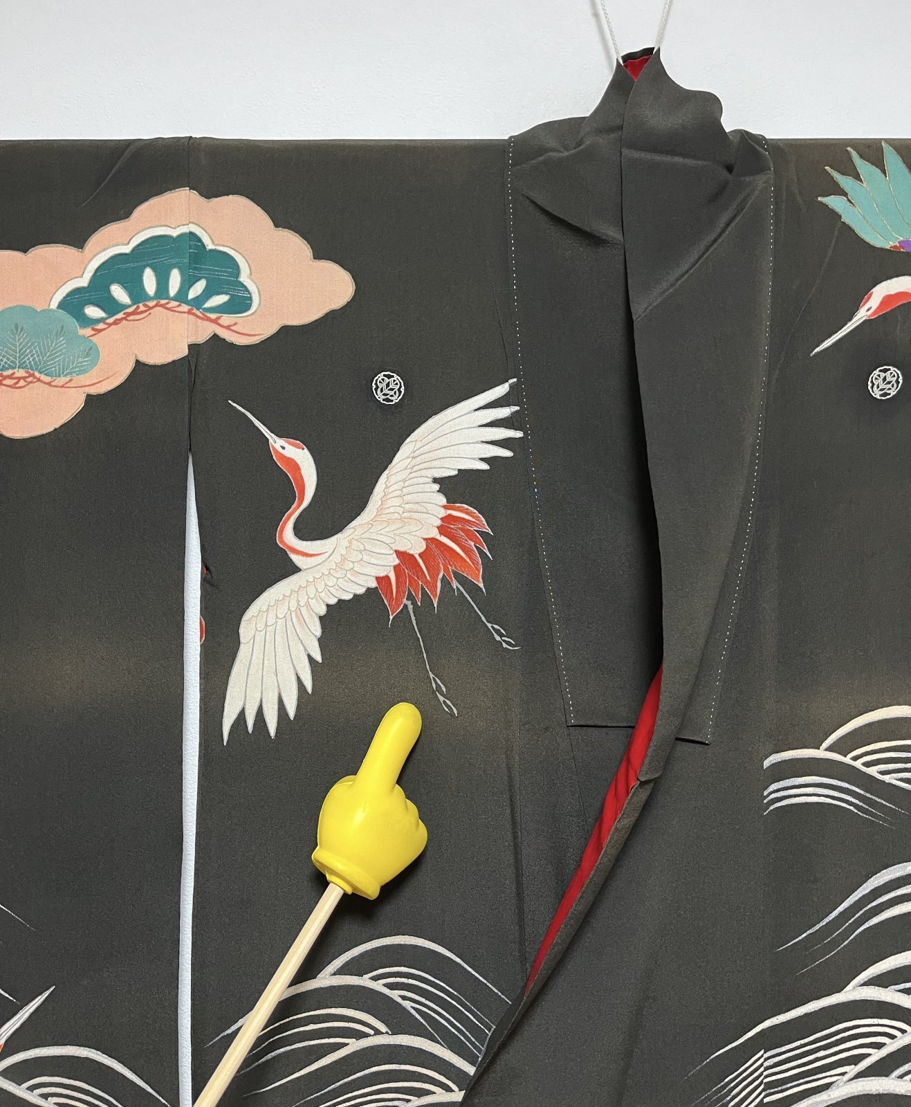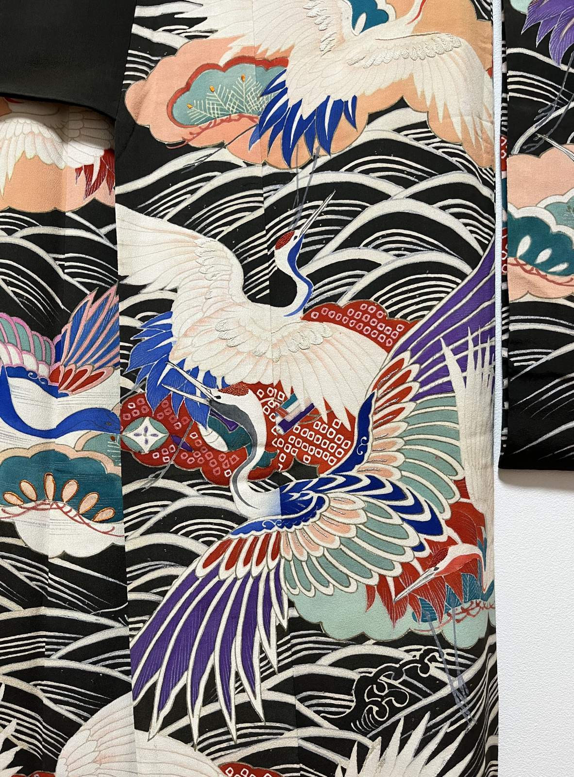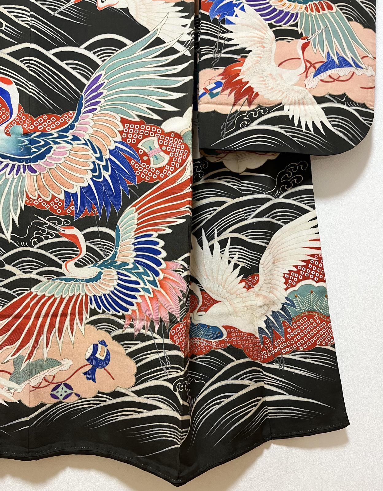 JAPANESE KIMONO SILK ANTIQUE FURISODE / FLYING CRANE / WAVE / TAKARAZUKUSHI [0017]
