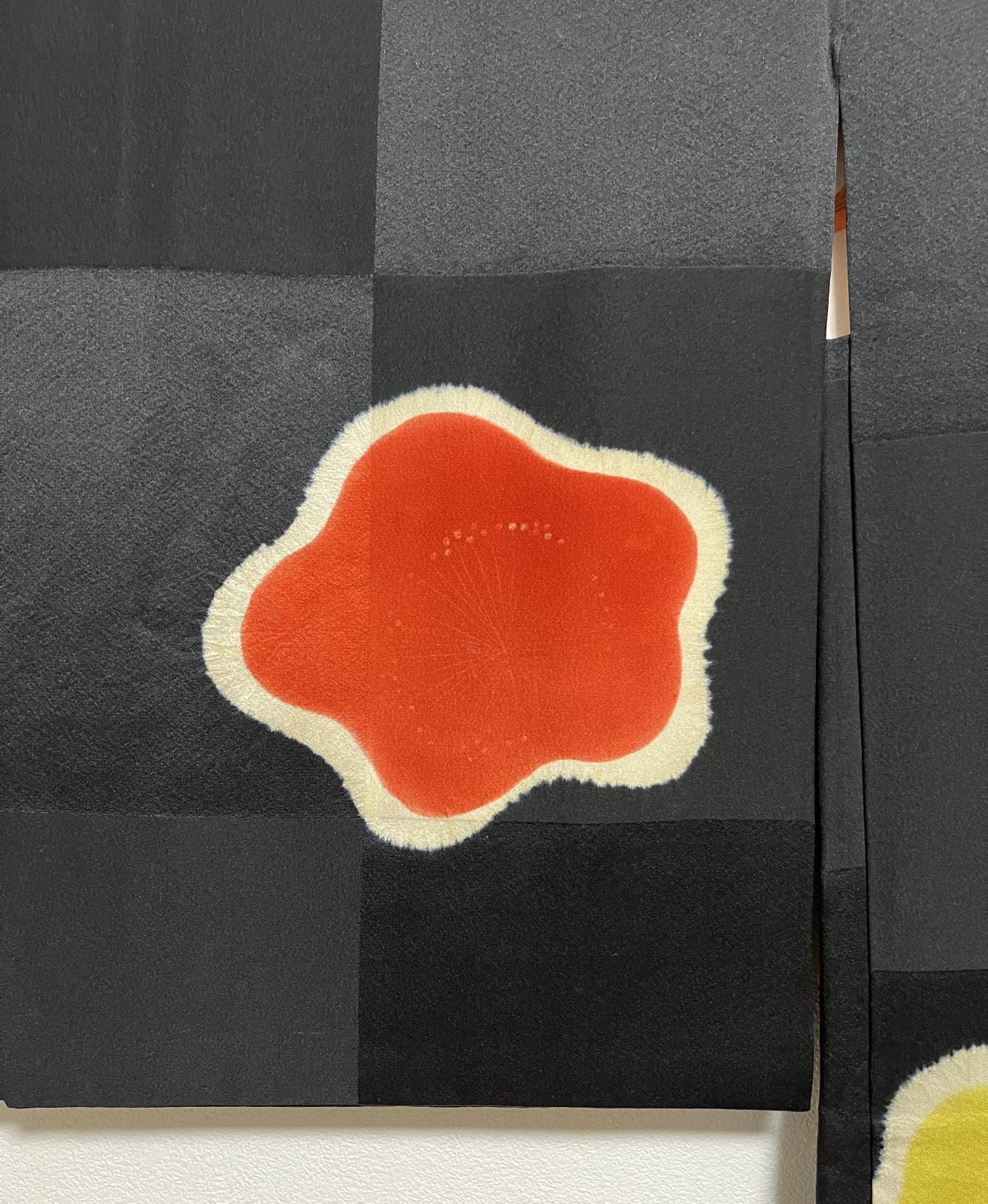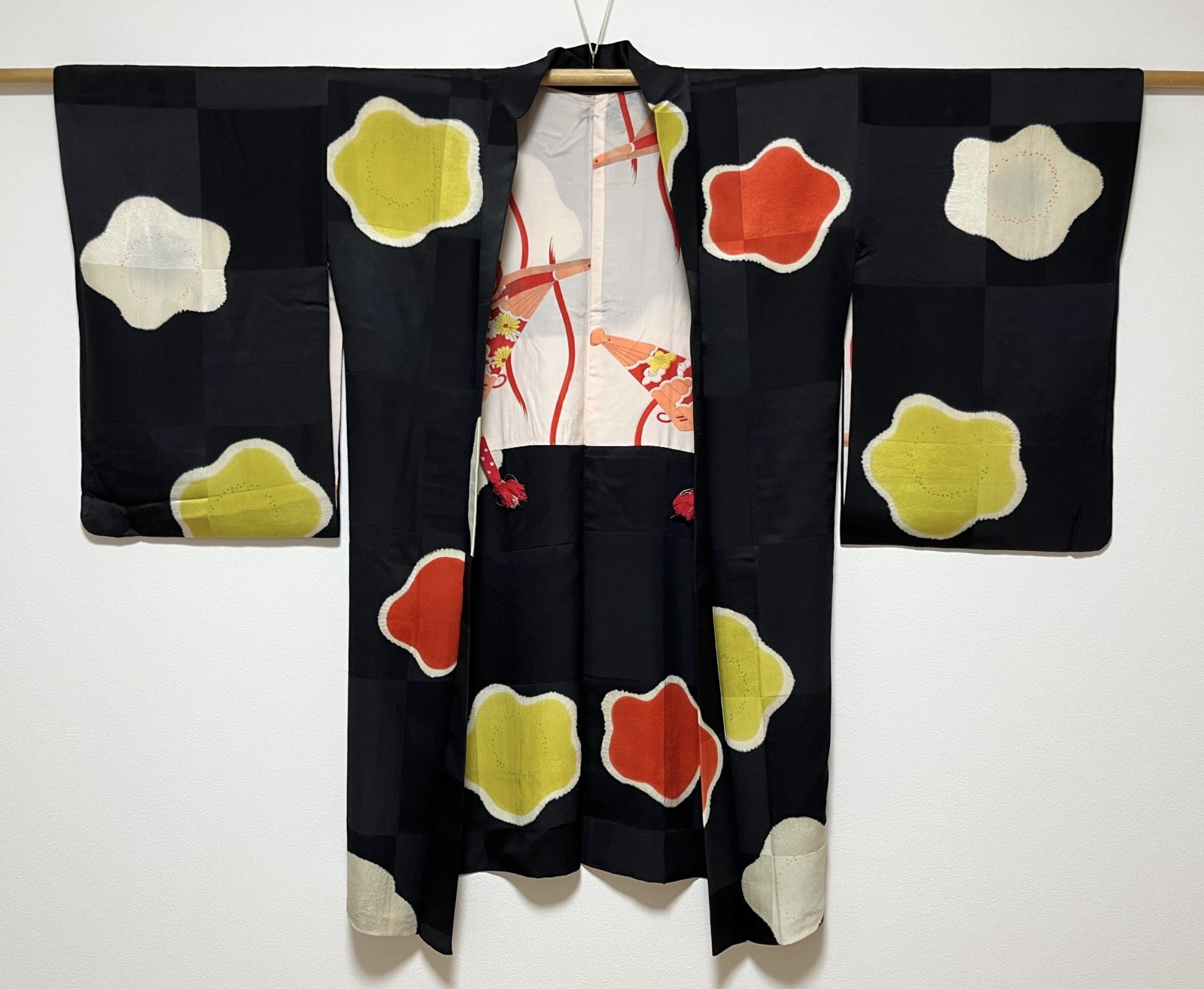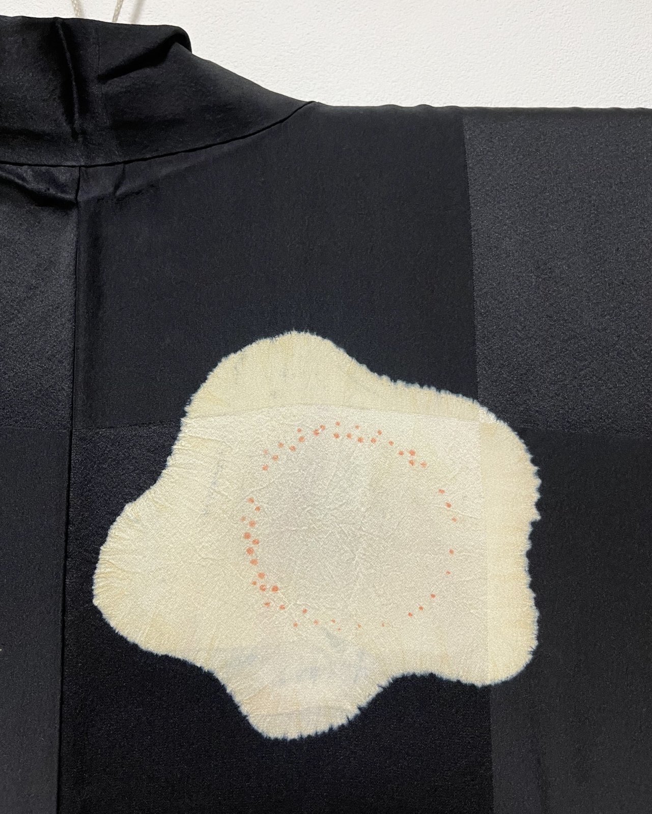 JAPANESE KIMONO SILK ANTIQUE HAORI / SHIBORI UME FLOWER / ICHIMATSU / BLACK [0019]