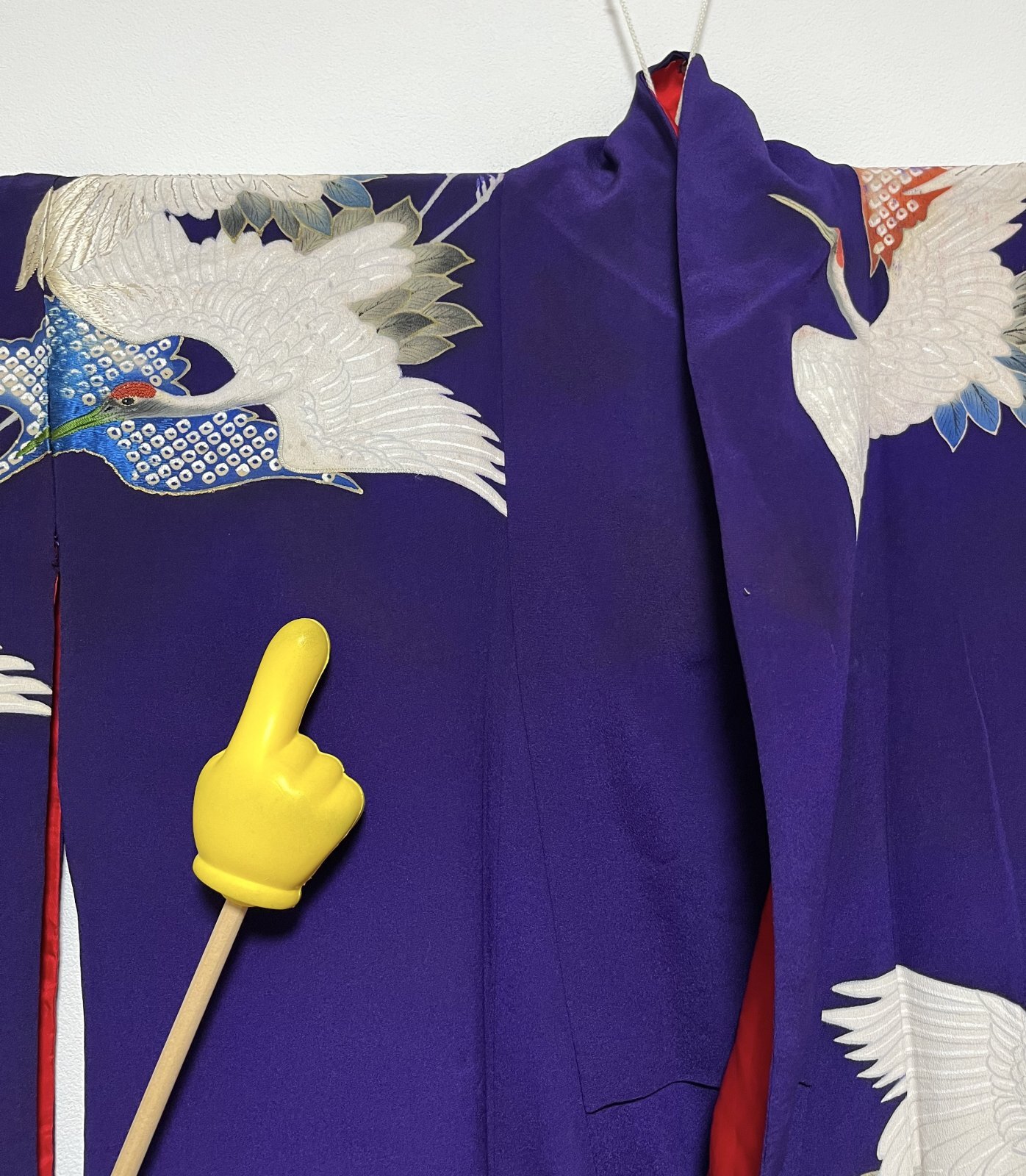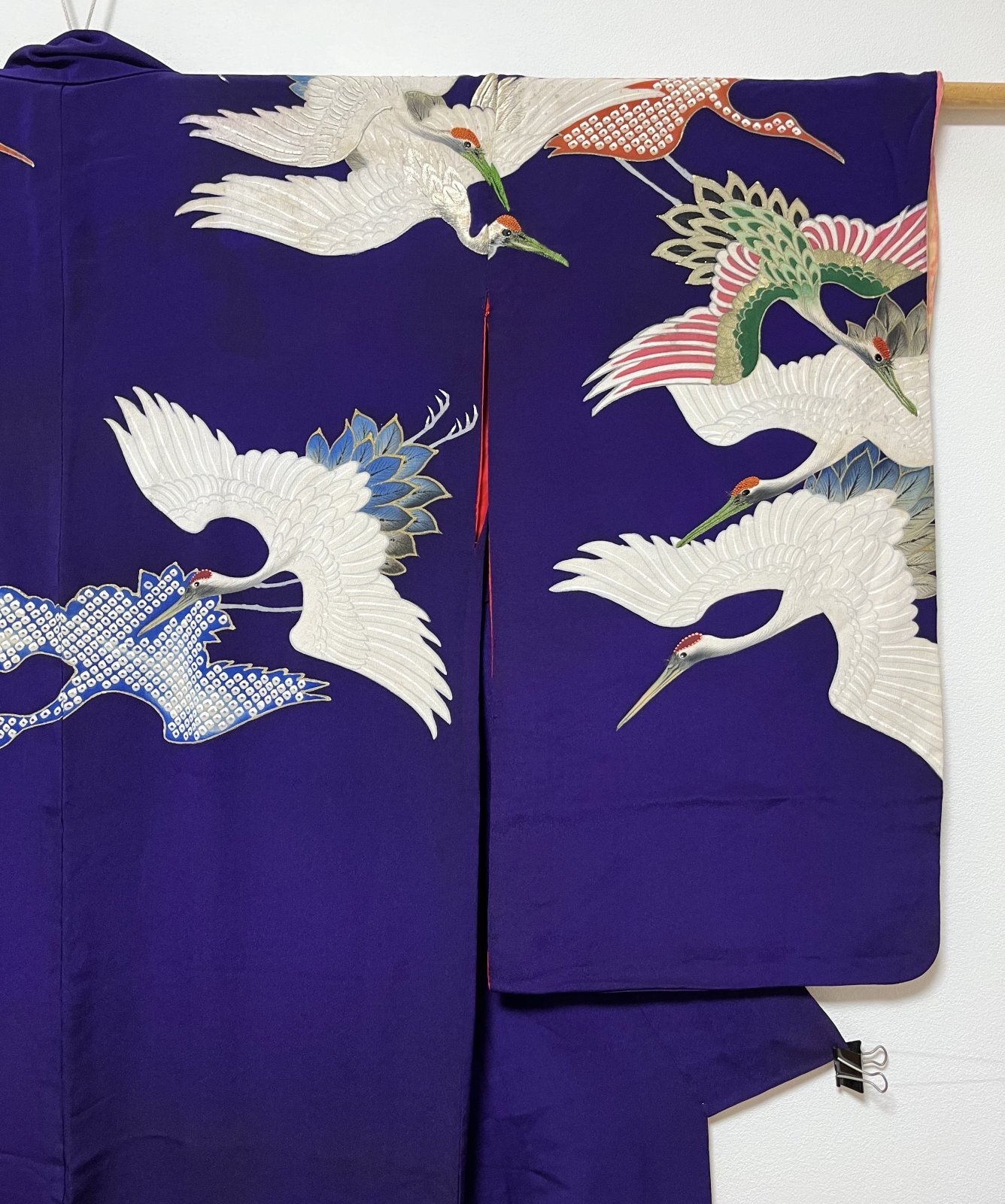 JAPANESE KIMONO SILK ANTIQUE HOUMONGI / FLYING CRANE / EMBROIDERY / DARK PURPLE