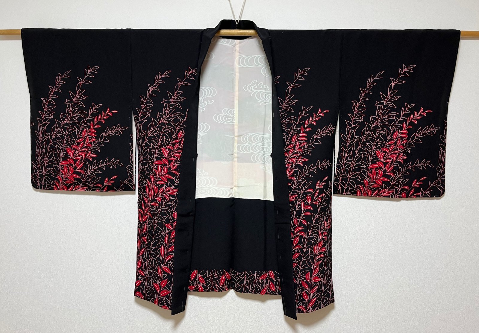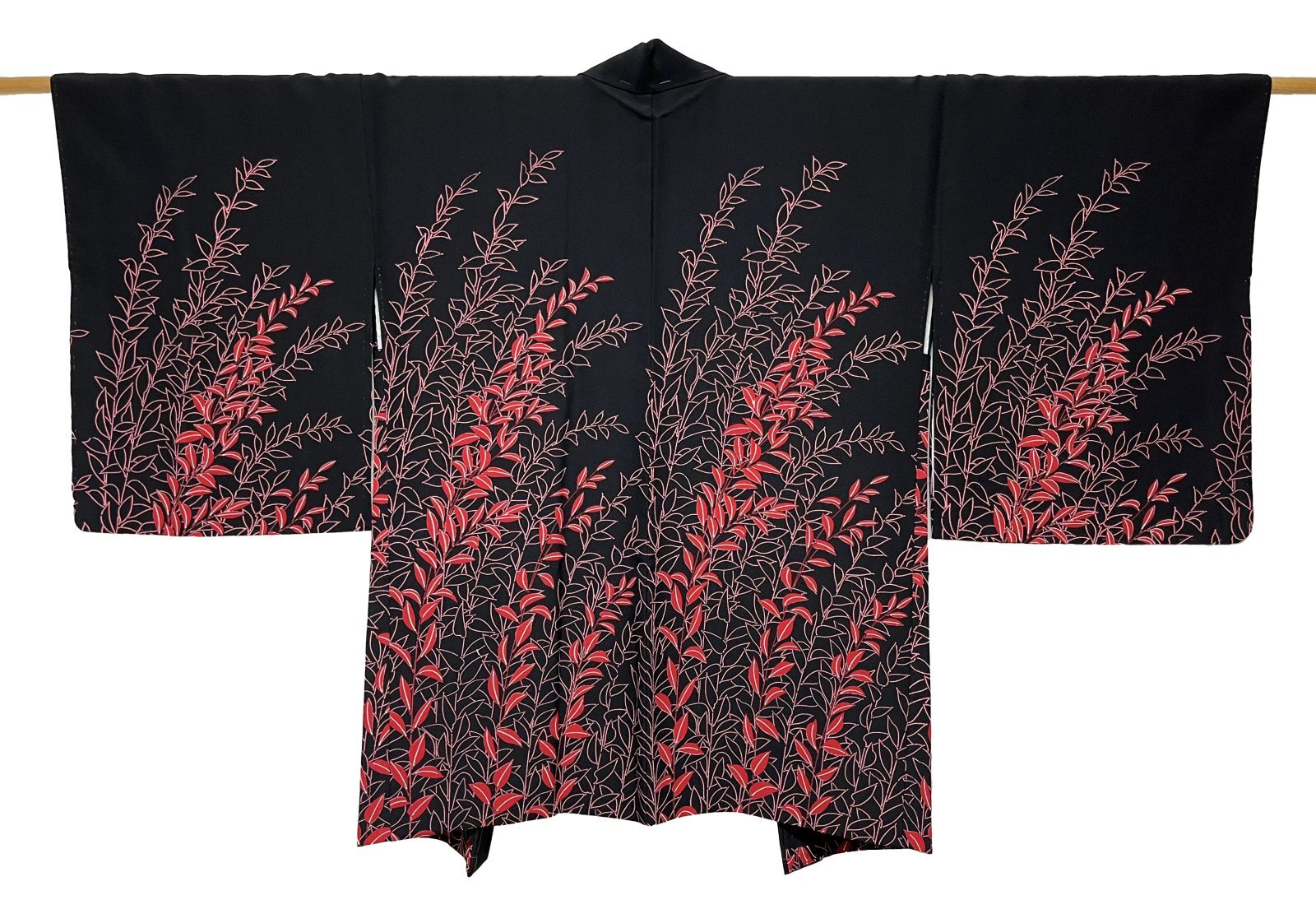 JAPANESE KIMONO SILK HAORI / LEAF / BLACK / UNUSED