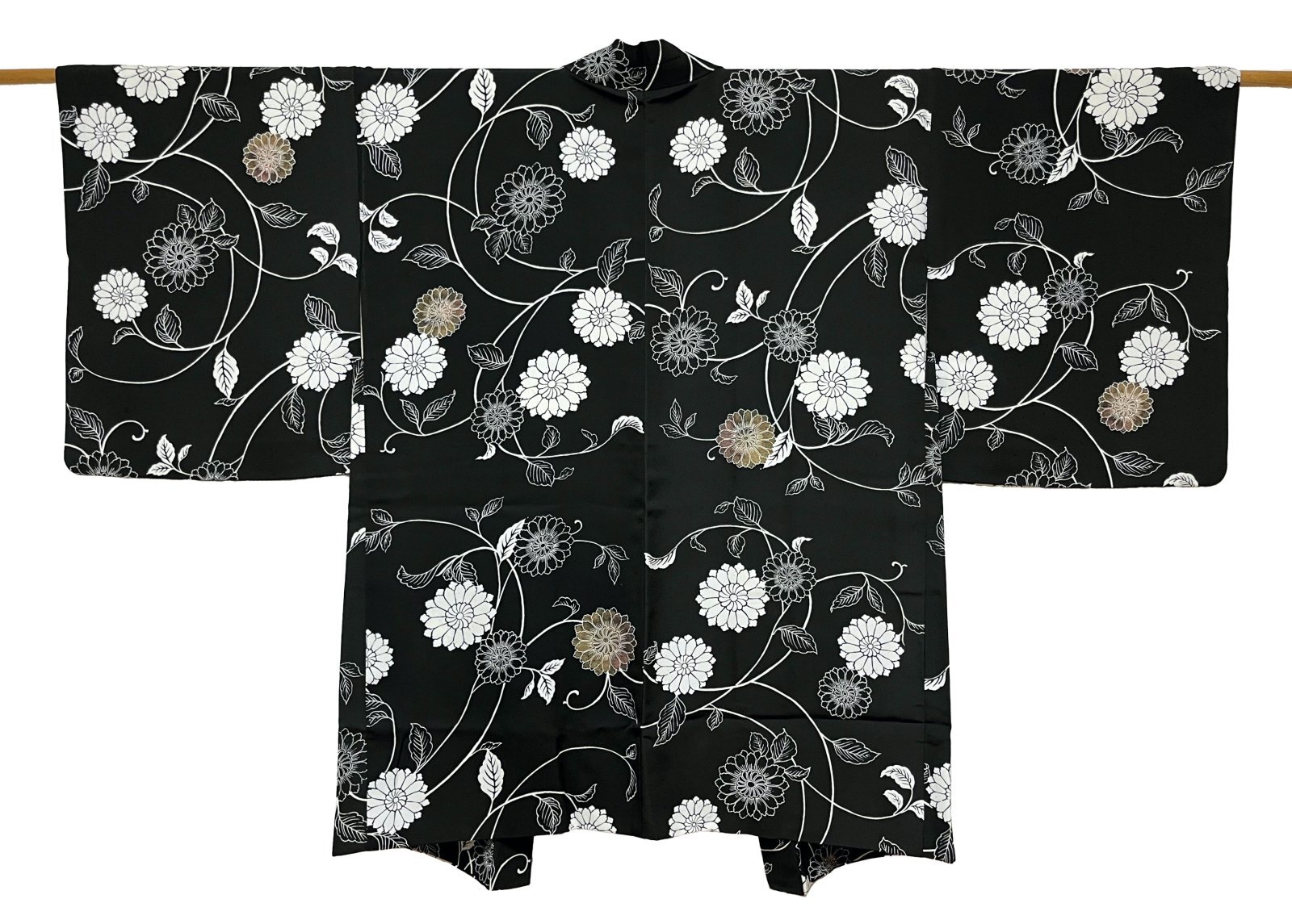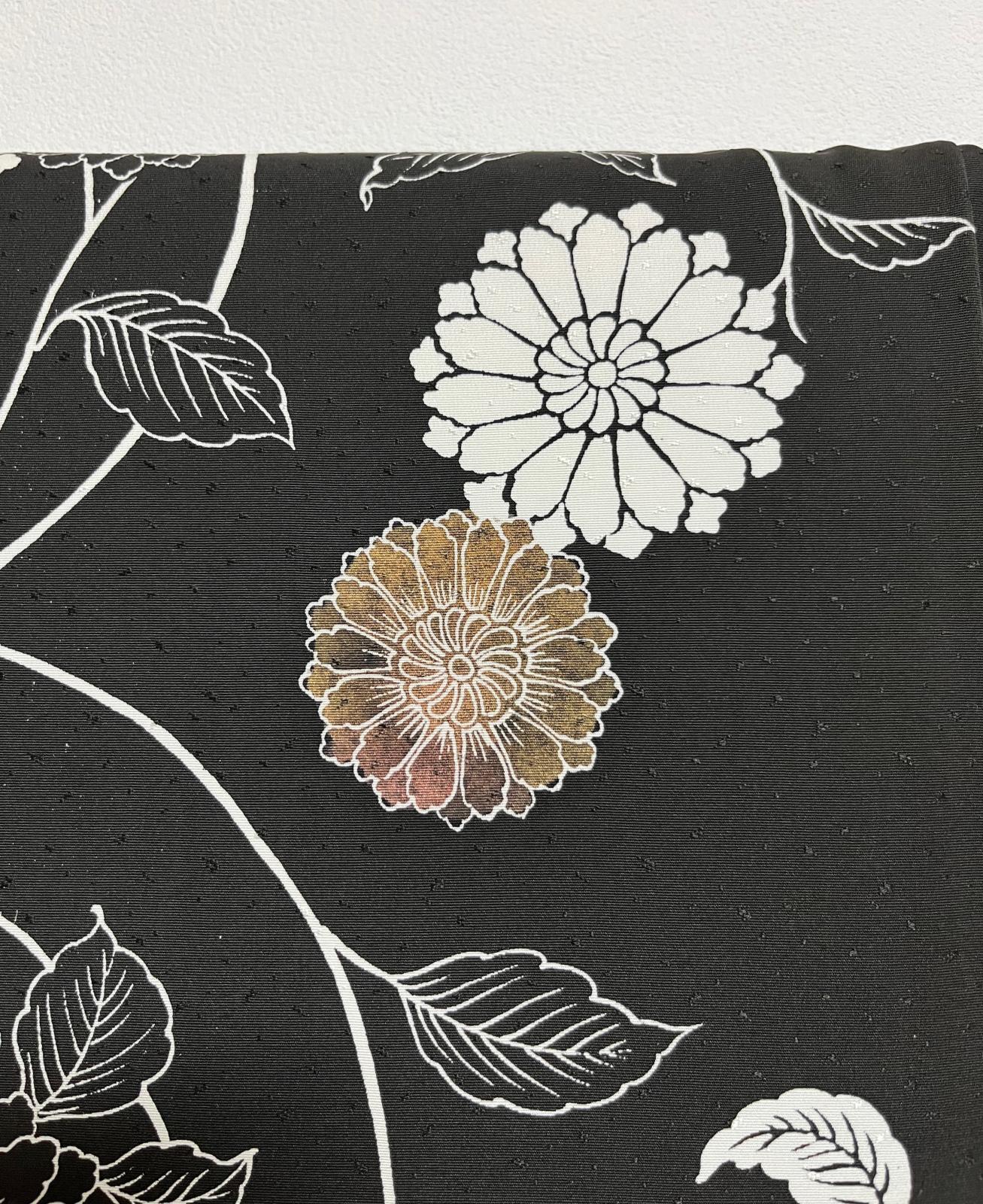 JAPANESE KIMONO SILK HAORI / KARAKUSA FLOWER / BLACK [0029]